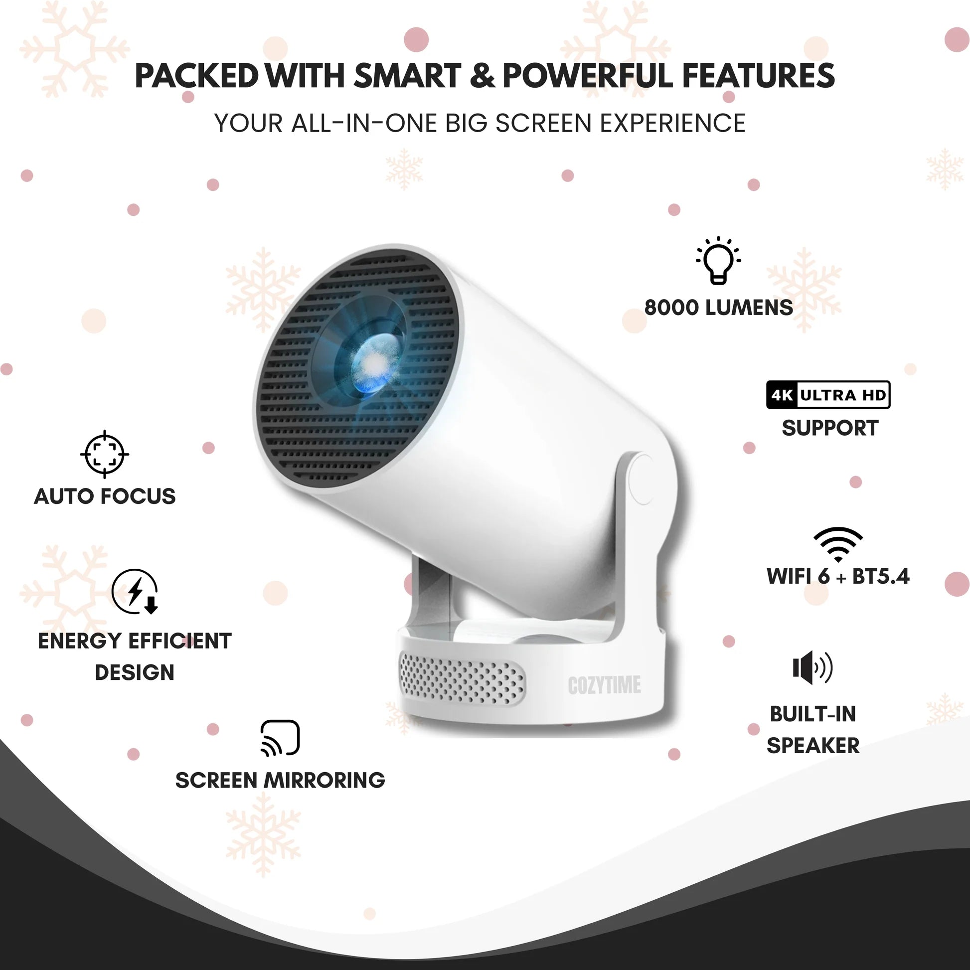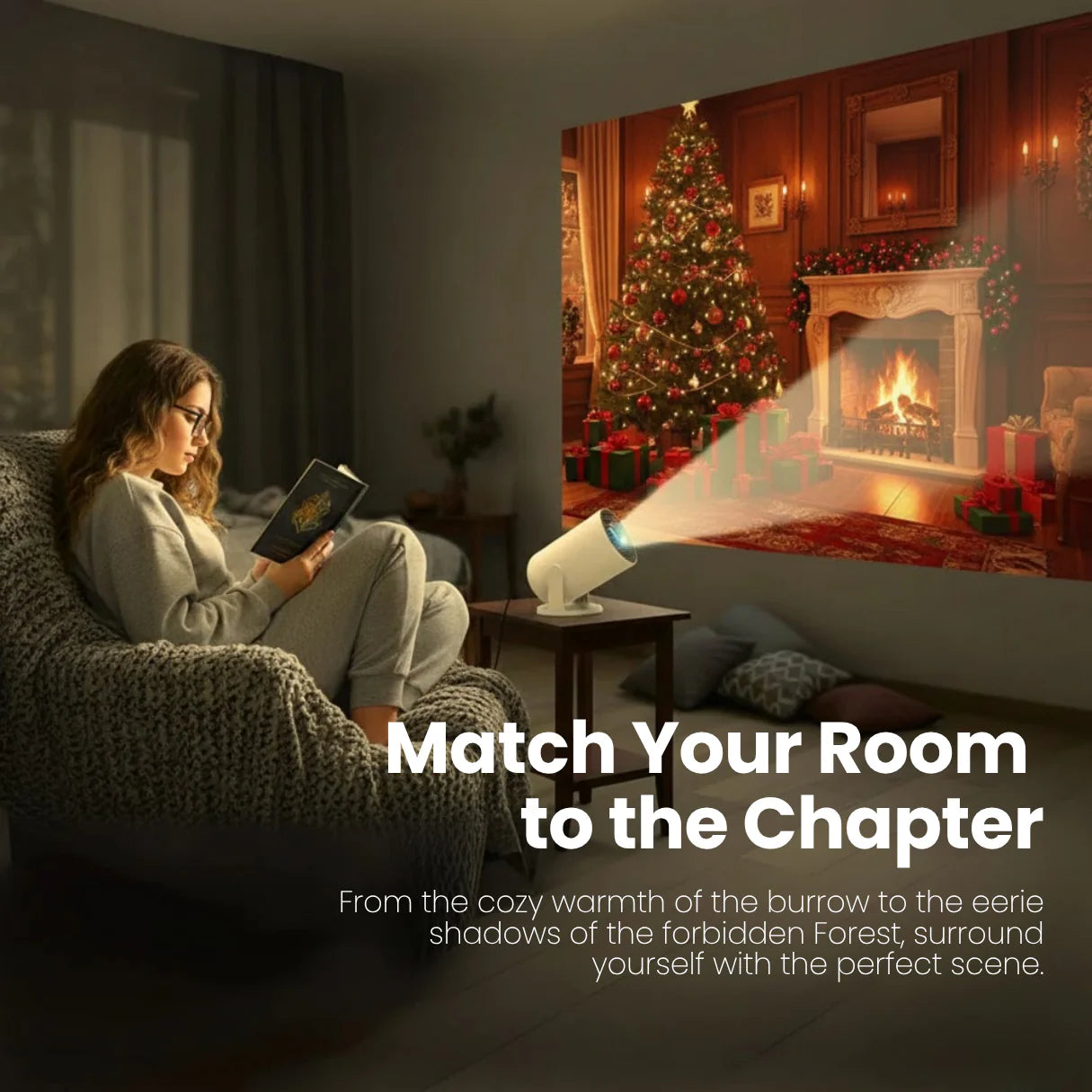 Our VisionBeam Projector is super lightweight and portable — perfect for movie nights anywhere. Use it in your bedroom, living room, backyard, or even project cozy Christmas scenes right on your wall. Wherever the vibe goes, VisionBeam follows. 🌙✨